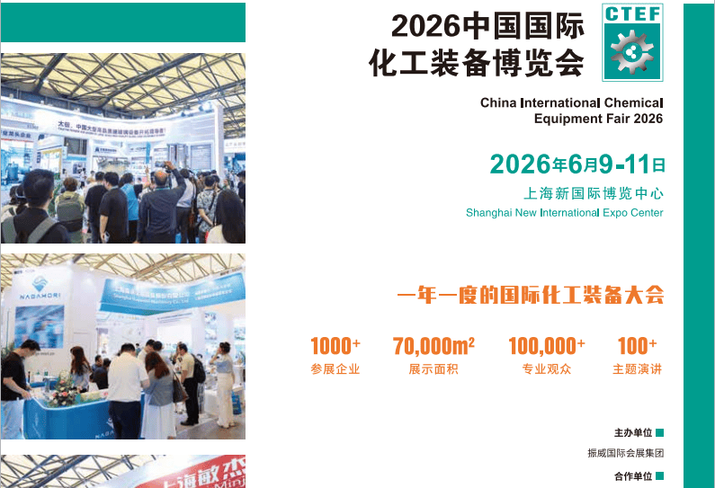 2026年6月9日至11日第十八届中国国际化工装备博览会(CTEF2026由中国化工装备协会与振威国际会展集团联合主办,以○“绿色·智能·协同○”为核心主题,携7万平方米展览空间▽○、1000余家海内外标杆企业、17个海外展团及10万余名专业观众▽△,构建覆盖石化装备、环保技术、智能系统等七大核心板块的全产业链平台,成为链接全球资源…▽□、推动技术转化、助力产业升级的核心枢纽。
