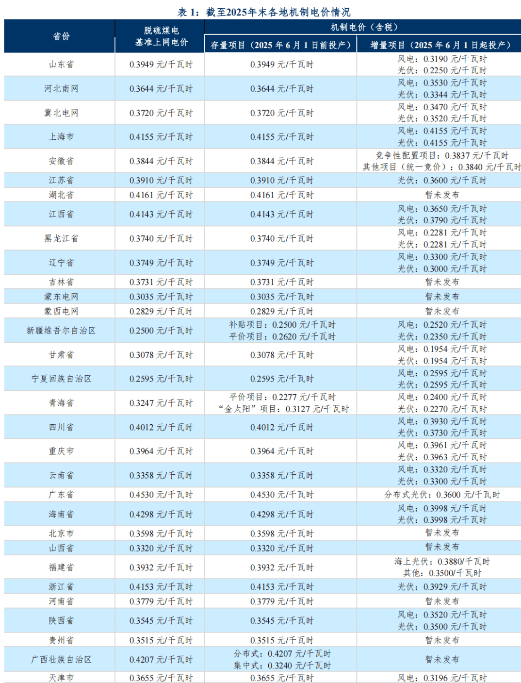 近年来我国电力体制改革不断深化,新型电力系统建设持续推进。电力市场交易机制方面,2025年1月27日,国家发展改革委、国家能源局发布《关于深化新能源上网电价市场化改革 促进新能源高质量发展的通知》发改价格〔2025〕136号(以下简称“136号文”),推动新能源上网电量全面进入电力市场;4月29日,发布《电力辅助服务市场基本规则》,规范辅助服务交易品种设立流程,健全辅助服务费用传导机制;8月6日,发布《电力市场计量结算基本规则》,规范电力市场计量结算行为,统一电费收付要求,这也标志着以《电力市场运行基本规则》为基础,电力中长期、现货、辅助服务规则为主干,信息披露、市场注册、计量结算为支撑的电力市场“1+6”基础规则体系构建完成,为建设全国统一电力市场奠定坚实规则基础。此外,2025年7月1日国家发展改革委、国家能源局复函批复《跨电网经营区常态化电力交易机制方案》,将国家电网和南方电网两大经营区域的电力交易壁垒打通,将有利于提升我国电网通道利用效率、促进跨区域电力的供需互补,从而进一步推动全国统一电力市场的建设。