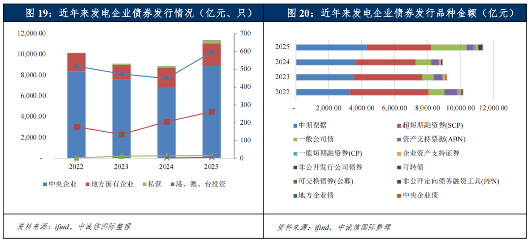 2024~2025年发电企业债券融资规模稳步增长、结构优化,形成了央国企主导、新能源提速的融资格局;行业整体融资成本下行,集中到期压力可控,预计2026年行业融资环境有望持续改善。